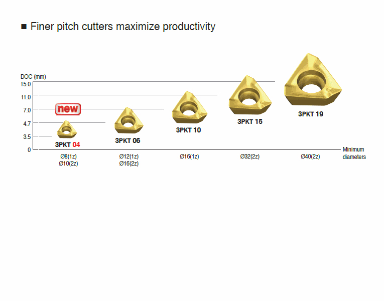 | Family Description | High positive inserts 3PKT with three helical cutting edges for 90° shoulders & general machining | FamilyName | 3PKT 15-M |